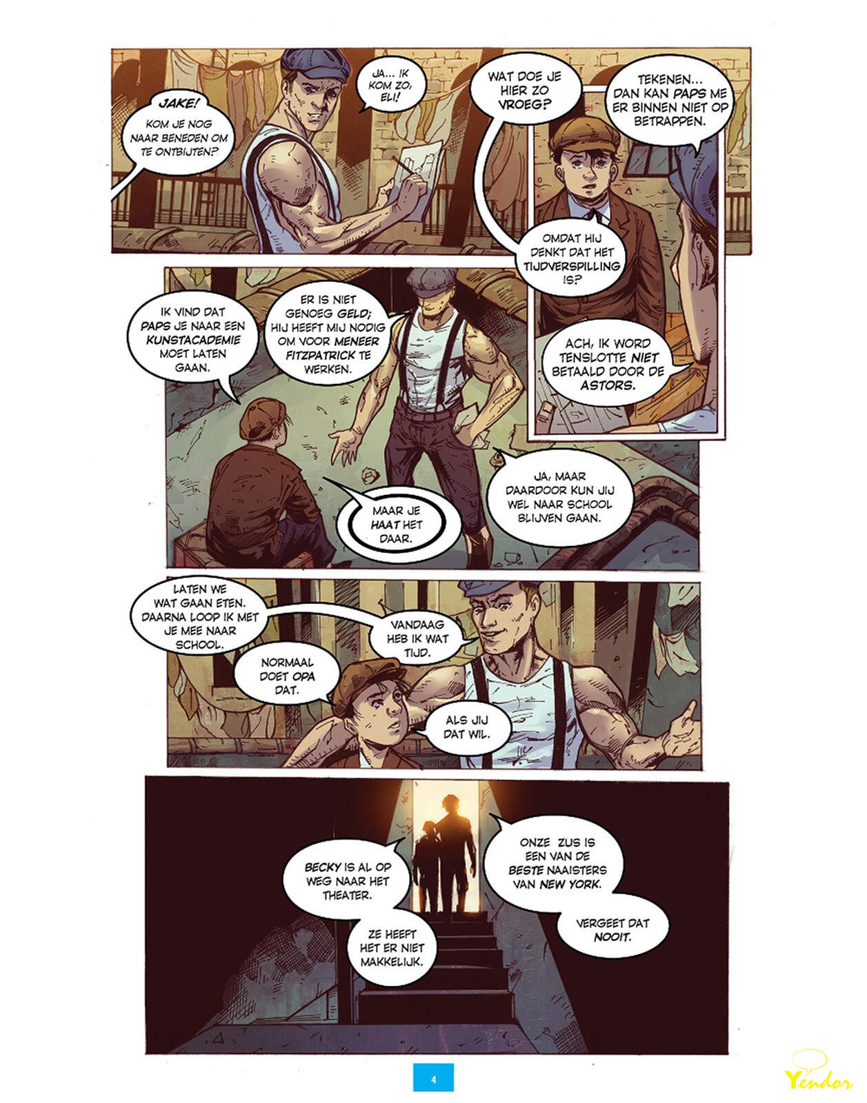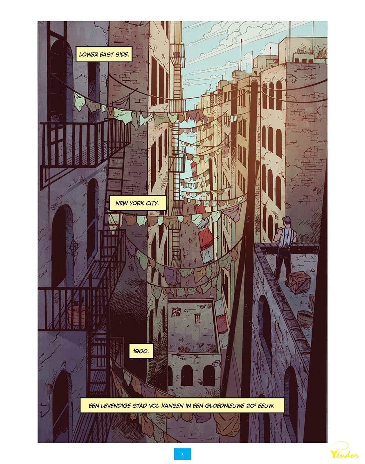 “New York City. Lente, 1900. Jake Gold, een Joodse immigrant, worstelt overdag in een sweatshop en vecht ‘s nachts in een bende. Hoewel hij een beter leven wil, kan hij niet ontsnappen aan zijn dagelijkse routine. Maar door een verrassende wending in Jakes leven, komt zijn toekomst er totaal anders uit te zien. Het verhaal van Daniel Kalban is een kruising tussen fantasy en historische fictie. Dit avontuur, boordevol actie, brengt tevens feiten rond 1900 in New York aan het licht. Historische figuren als Thomas Edison, J.P. Morgan en zelfs Harry Houdini zijn veelvoorkomend in deze strip. Tekenaar Dody Eka, op zijn beurt, geeft een levendig beeld van New York in die tijd die samengaan met mysterieuze krachten, fantasie en Tesla!”