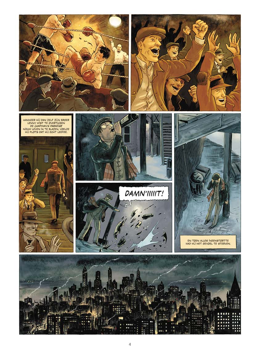 Broadway, de straat die nooit slaapt, levend op het ritme van de Music-Hall en de “speak easies”, gedrenkt in walmen van clandestiene alcohol. De neonlichten trekken nachtvlinders aan van allerlei slag: schrijvers, gangsters, danseressen, beroemdheden en rijkelui… zoek naar najagen.