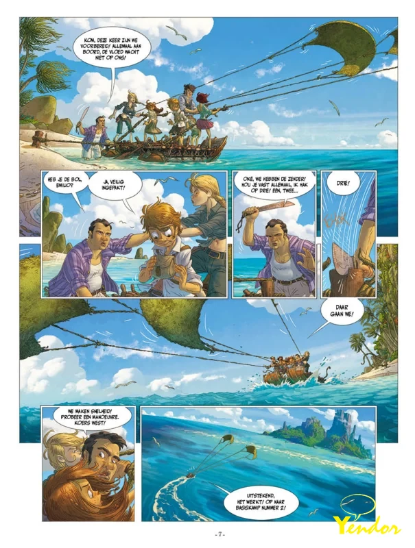 Gestrand op een verlaten eiland in het midden van de Stille Oceaan, worden Naomi, Emilio, Terence, Capone en de anderen ware Robinson Crusoë’s. Door samen te werken, lukt het ze een zeilvlot te bouwen dat helaas aan flarden gaat voordat ze hun doel bereiken. De onverschrokken kinderen en de Duitse spion Sigrid raken gescheiden van de rest van de groep en kunnen gelukkig veilig een strand bereiken. Daar ontdekken ze, begraven in het zand, een mysterieuze robot. Ze slagen erin om de robot opnieuw op te starten en die onthult hen meer mysteries over het eiland waar ze zijn gestrand. Een van de verrassingen die hen te wachten staan, is een toevluchtsoord voor piraten met een schat, maar daar vinden ze ook een verborgen stad die bij een verdwenen beschaving lijkt te horen!