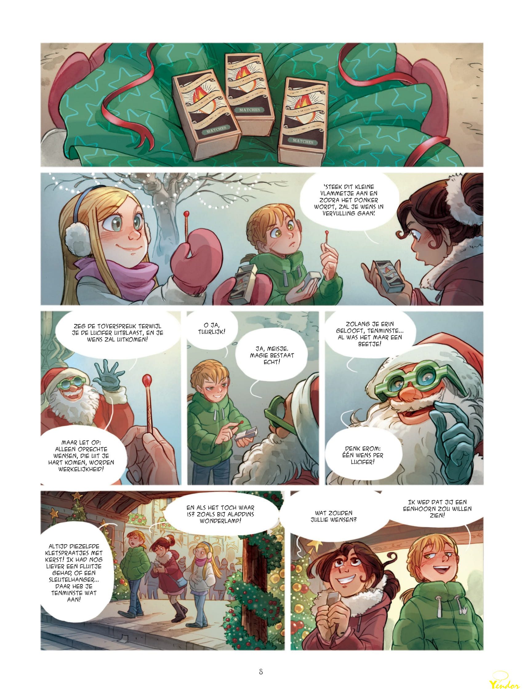 “Het is Kerstmis bij de zusjes Duizendblad. Maar het is vooral een hele opgave voor Sarah, Cassiopeia en Lucy, die niet weten wat ze voor hun zusjes moeten kopen! Gelukkig komen ze een mysterieuze kerstman tegen, die elk van hen een magische lucifer geeft om een wens in vervulling te laten gaan. Een geweldige kans? Niet echt. Moet je aan jezelf denken? Of aan anderen? Redelijk zijn? Onredelijk? Kerstmis, zelfs met een magische lucifer, is helemaal geen geschenk!