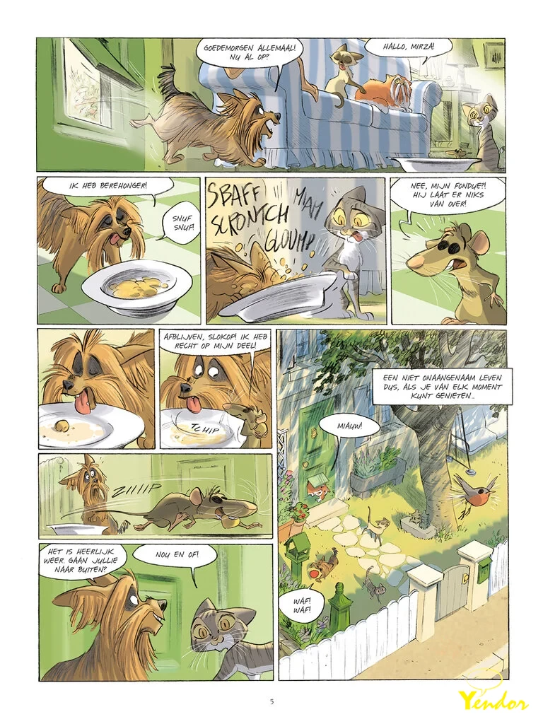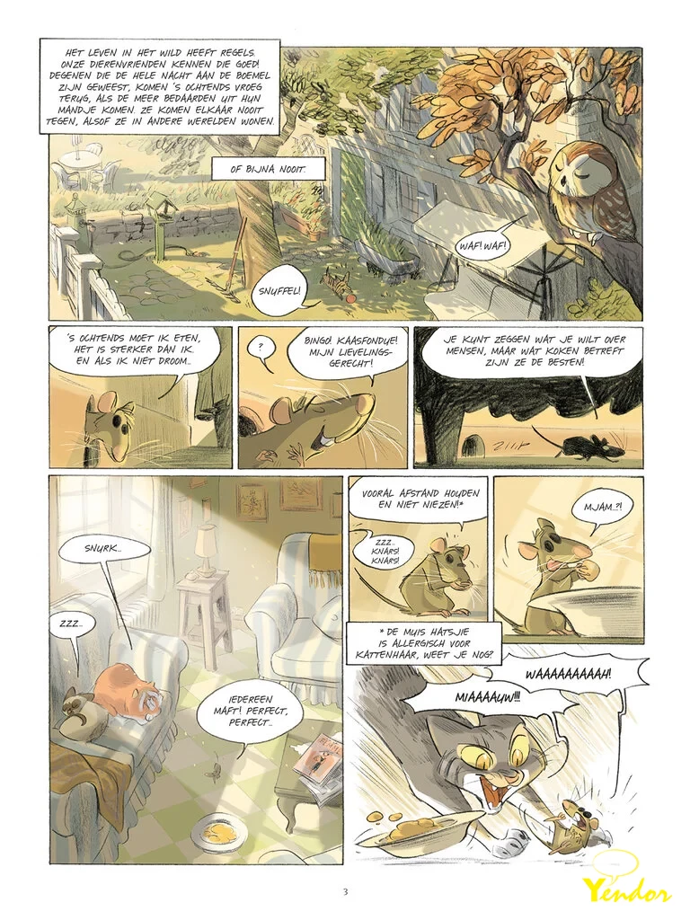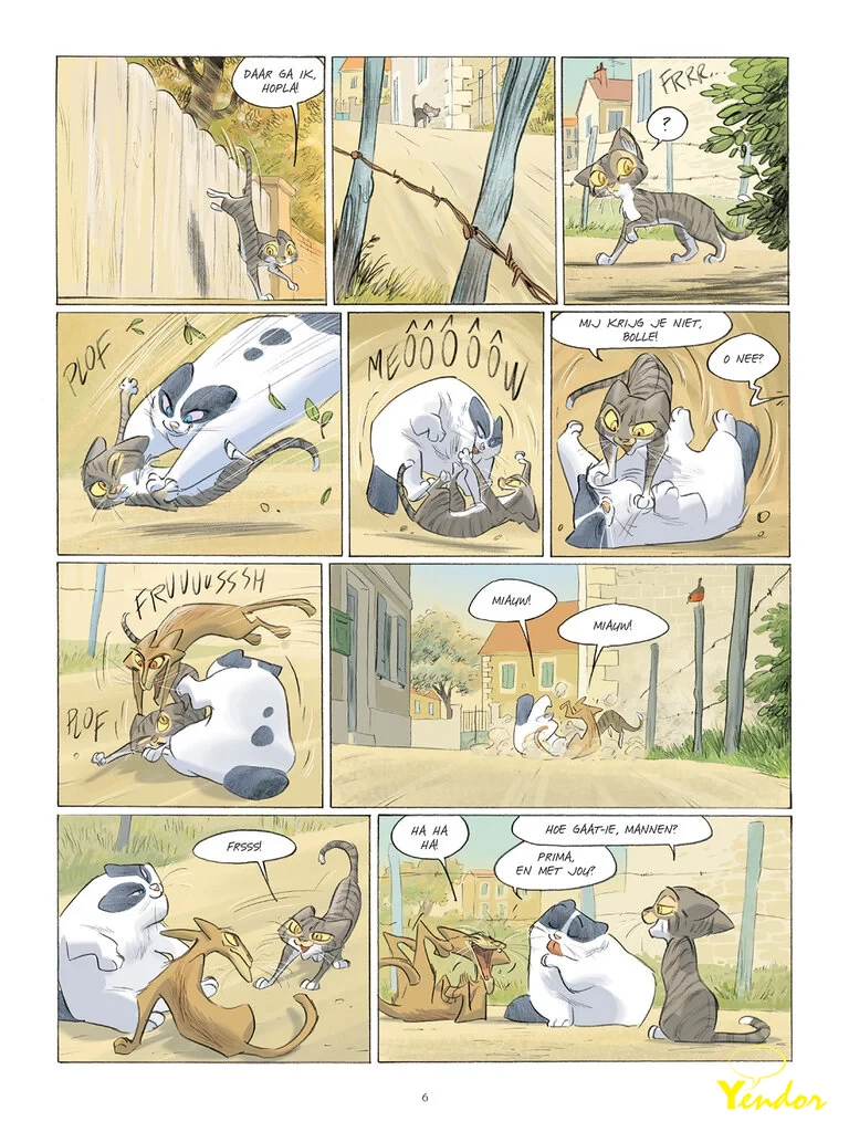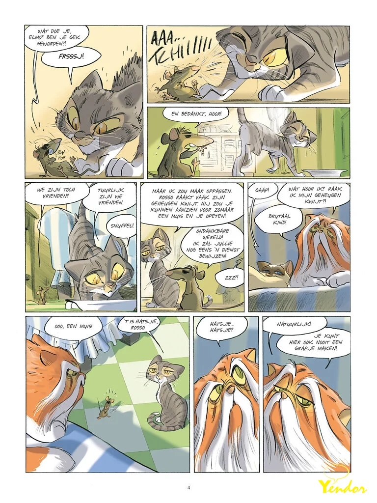 Elmo is een kat… Nog geen volwassen kat, maar ook geen kitten meer… Een jonge kat dus! Hij woont in een huis omringd door bomen, best ver van de stad en dicht bij een boerderij. En hoewel hij droomt van nachtelijke gevechten in het bos, ligt hij ’s nachts gewoon in een mandje. En overdag speelt hij met de zwerfkatten uit de wijk. Een soort luizenleventje dus. Maar dat zal spoedig veranderen…