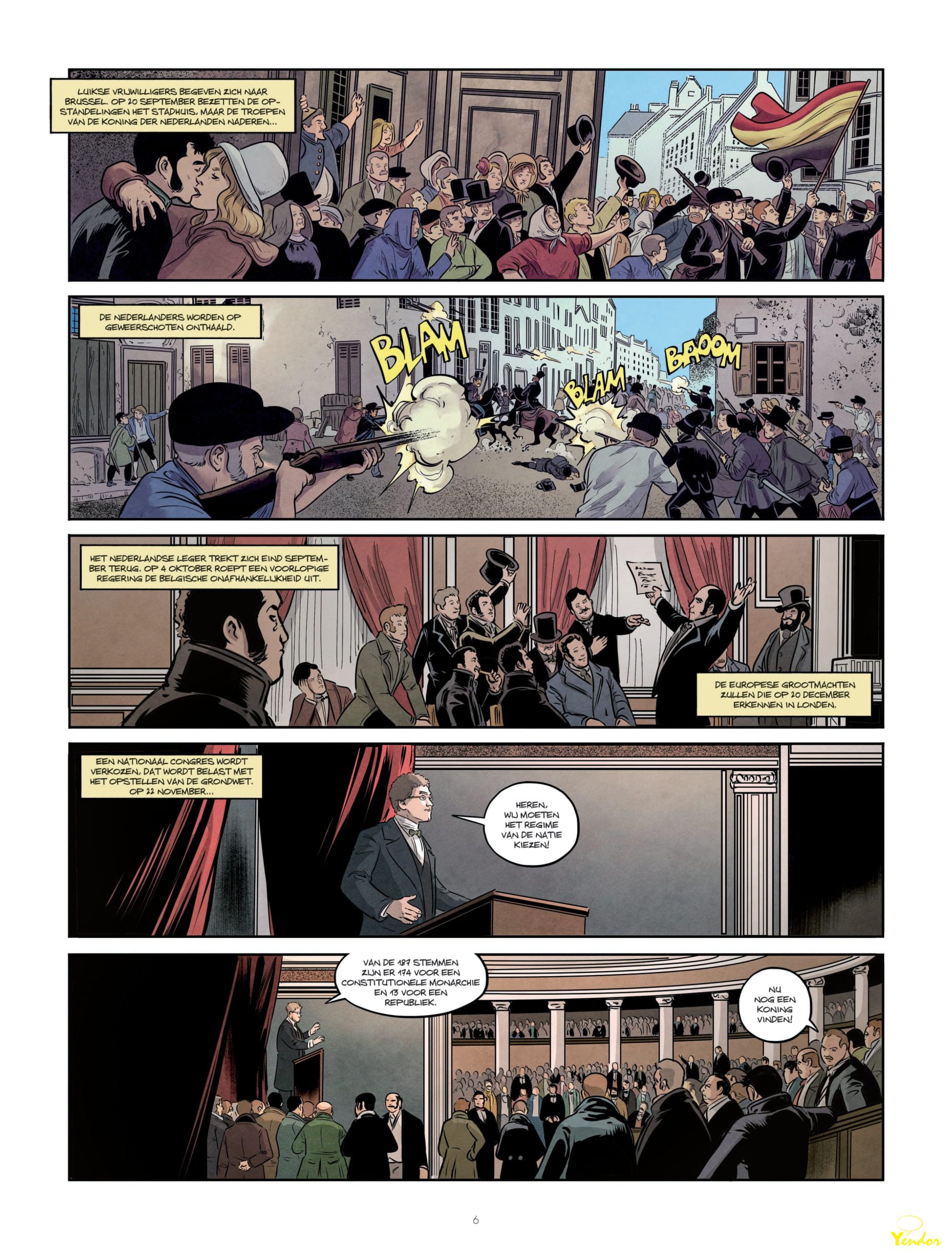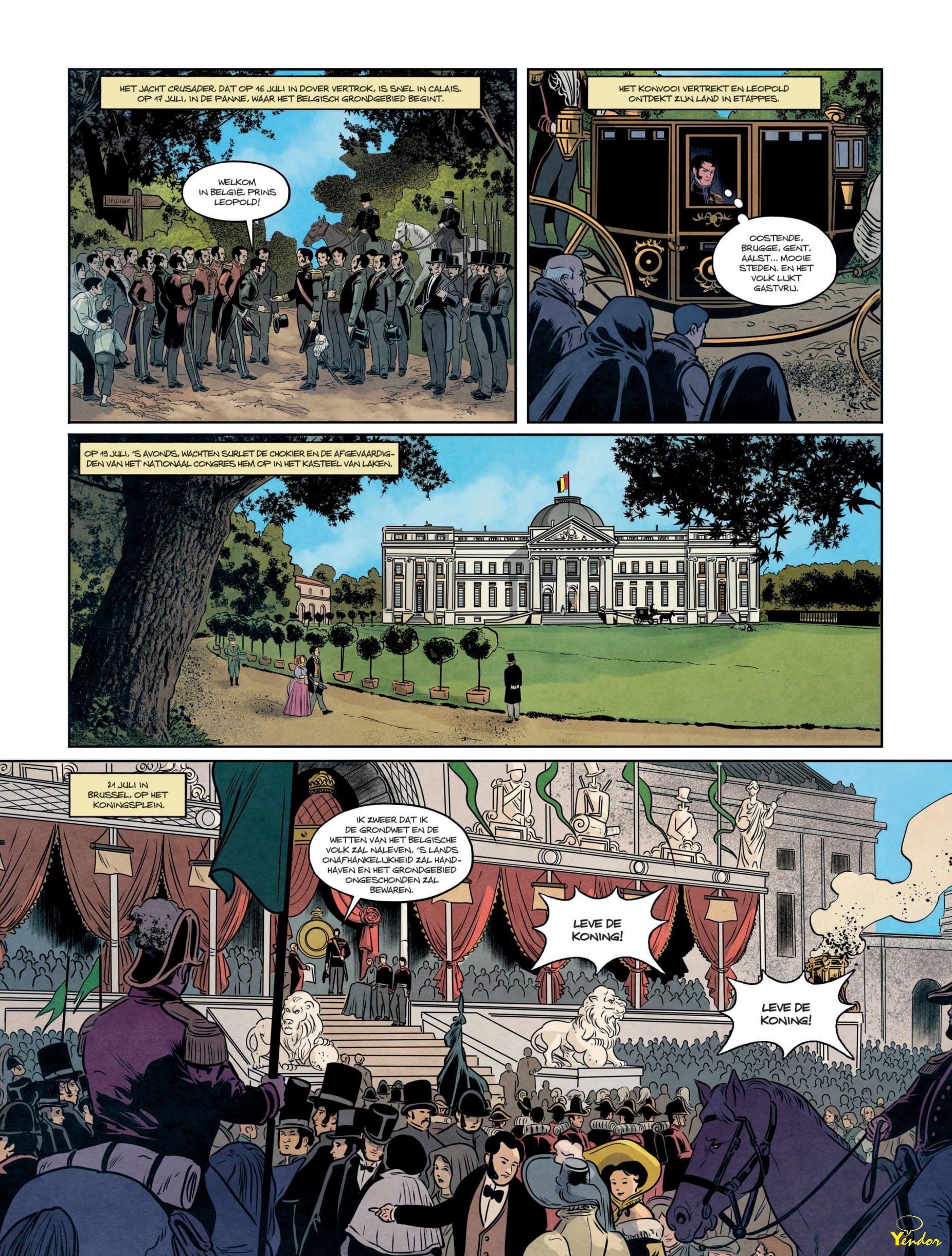 “Een compromisloos verhaal over de Belgische monarchie! In 1830 is België gesticht als een constitutionele monarchie. Van Leopold I tot Filip: de koningen der Belgen zijn altijd onlosmakelijk verbonden met de geschiedenis van het land. Deze strip vertelt hun verhaal en maakt de geschiedenis van België en de koningen der Belgen inzichtelijk en toegankelijk.”