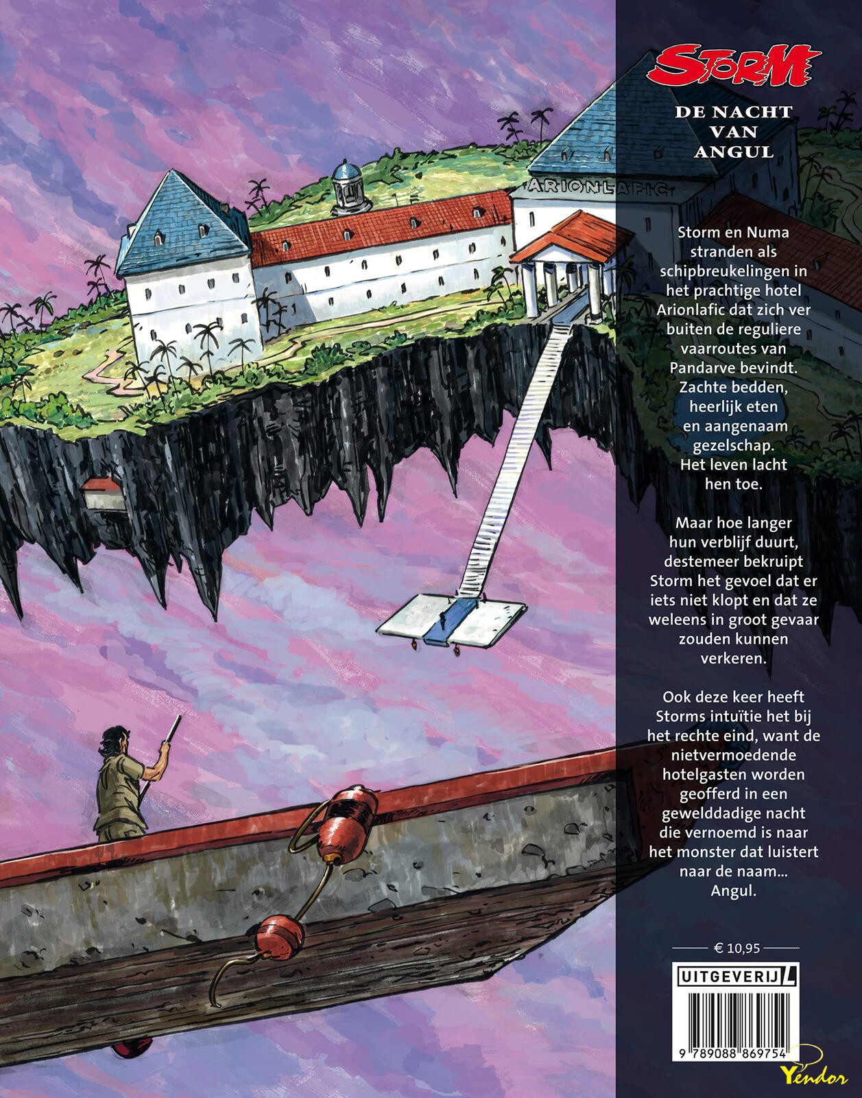 “Storm en Numa stranden als schipbreukelingen in het prachtige hotel Arionlafic dat zich ver buiten de reguliere vaarroutes van Pandarve bevindt. Zachte bedden, heerlijk eten en aangenaam gezelschap. Het leven lacht hen toe. Maar hoe langer hun verblijf duurt, destemeer bekruipt Storm het gevoel dat er iets niet klopt en dat ze weleens in groot gevaar zouden kunnen verkeren. Ook deze keer heeft Storms intuïtie het bij het rechte eind, want de nietsvermoedende hotelgasten worden geofferd in een gewelddadige nacht die vernoemd is naar het monster dat luistert naar de naam… Angul.”