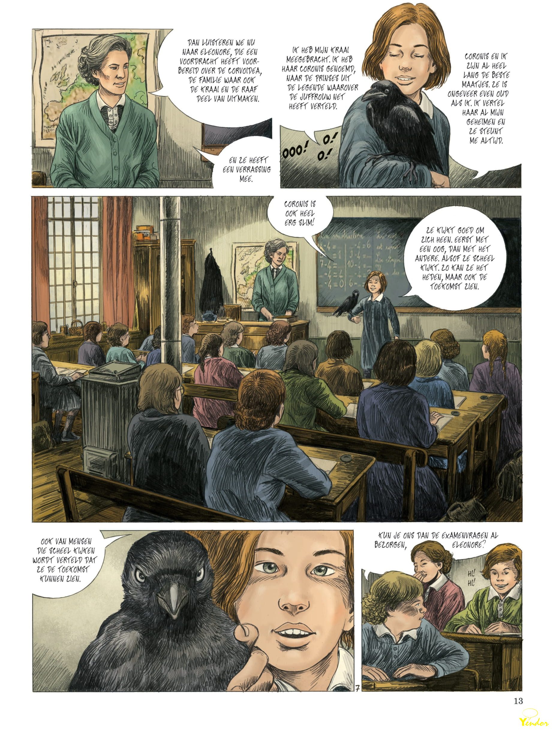 Al van jongs af aan is Eleonore dol op raven en kraaien. Daardoor valt ze op bij haar medeleerlingen. Het jonge meisje is mensenschuw en vertoeft het liefst in het gezelschap van Coronis, haar tamme kraai. Bovendien kent Eleonore alle legendes rond haar lievelingsdieren, waardoor ze tegelijk verleiding uitstraalt en angst inboezemt. En net dat kan, jaren later, weleens ernstige gevolgen hebben wanneer de Tweede Wereldoorlog uitbreekt…