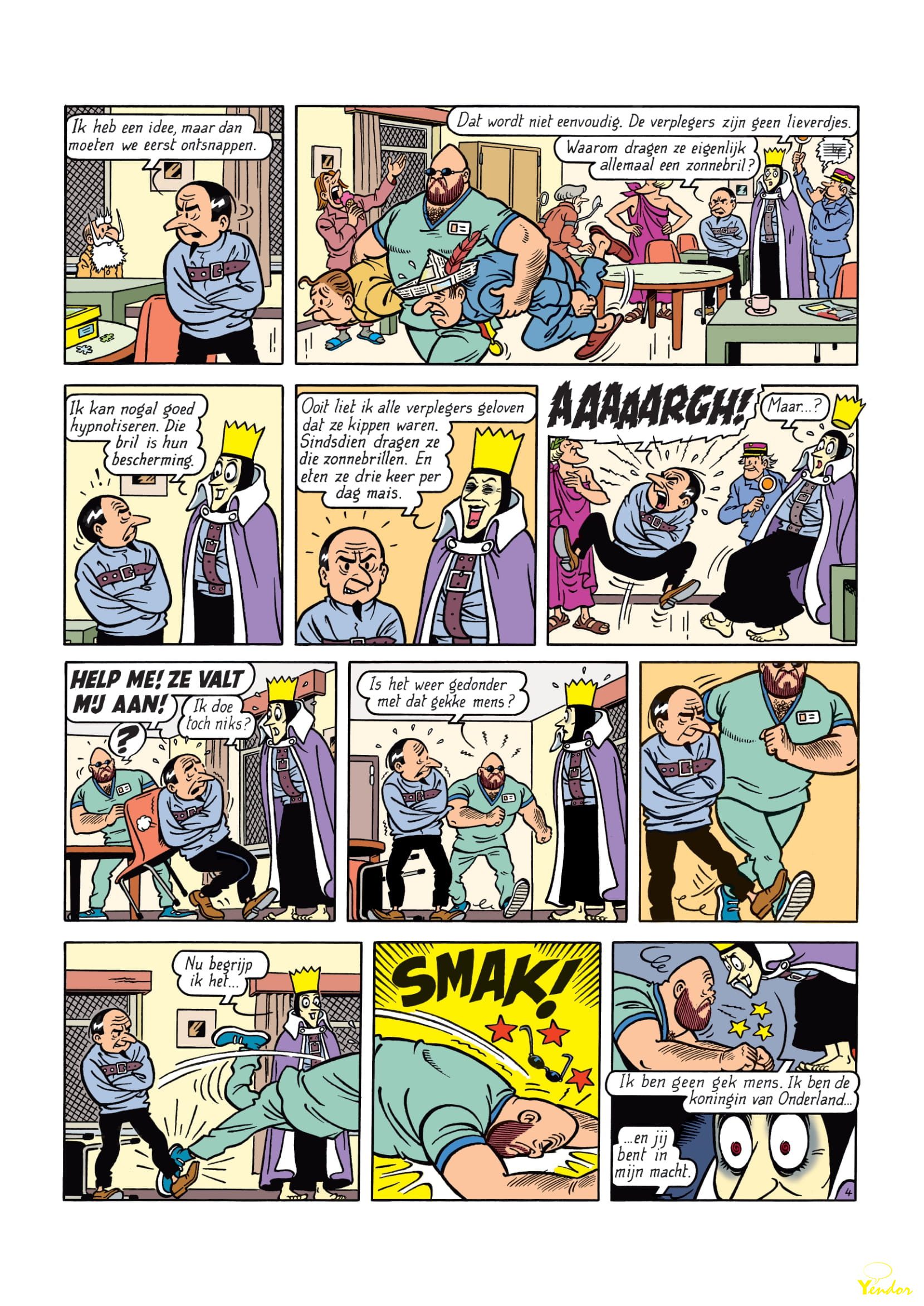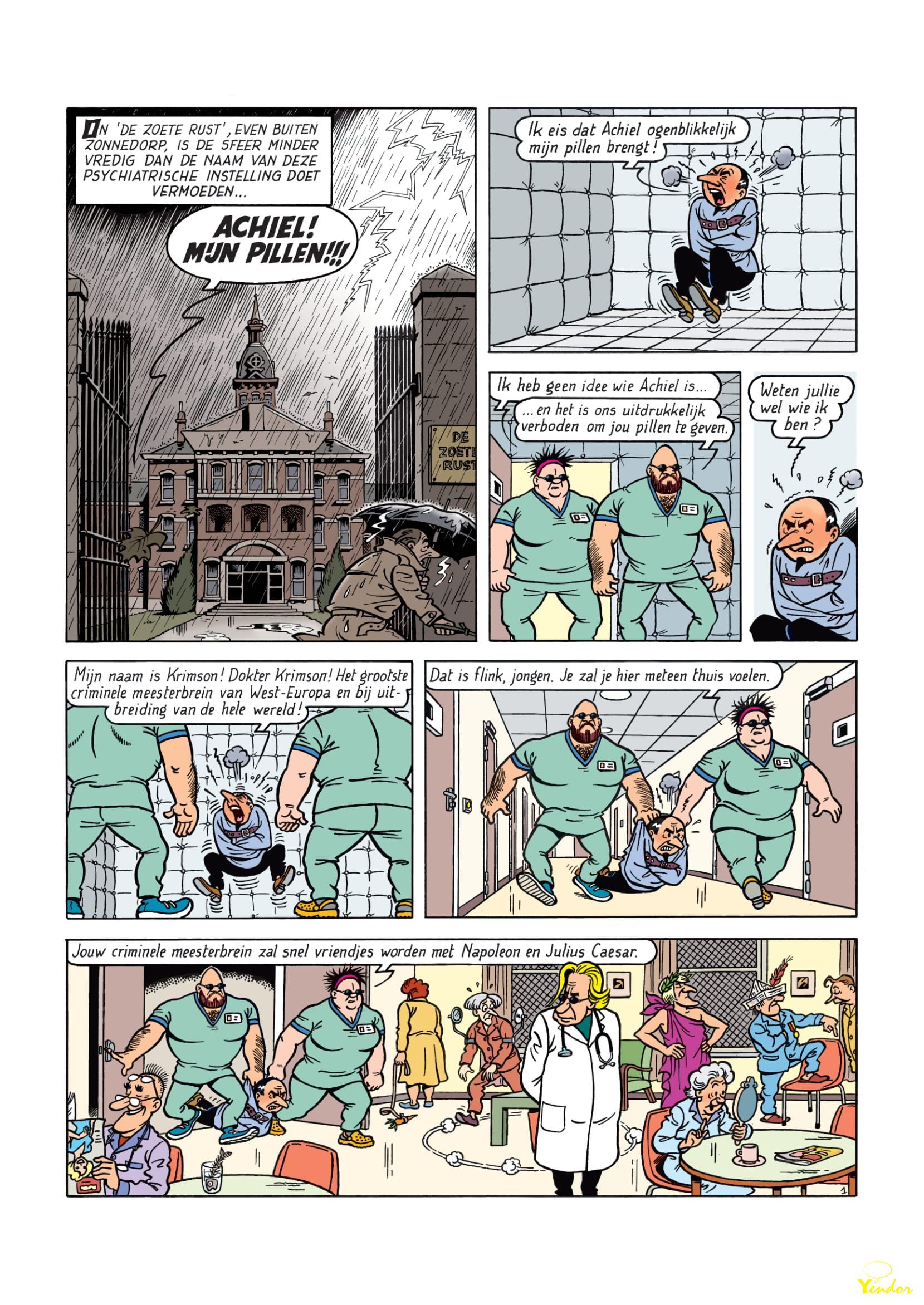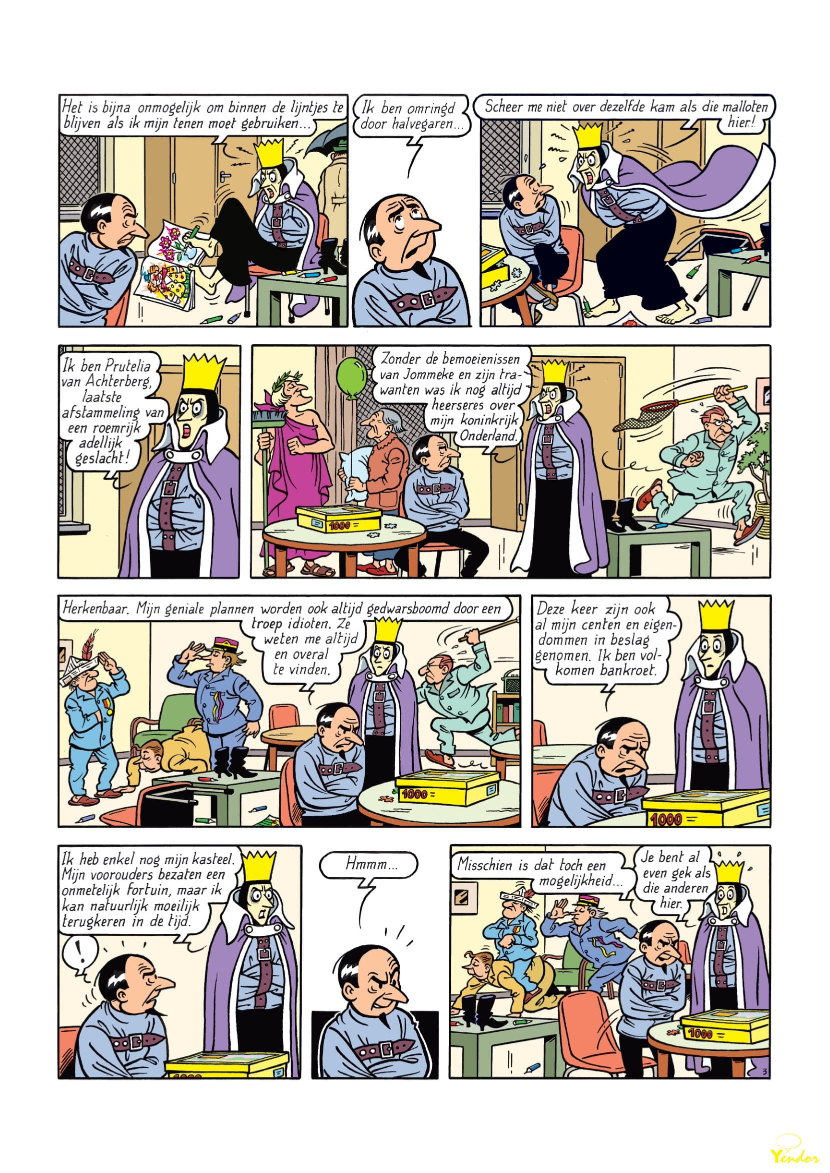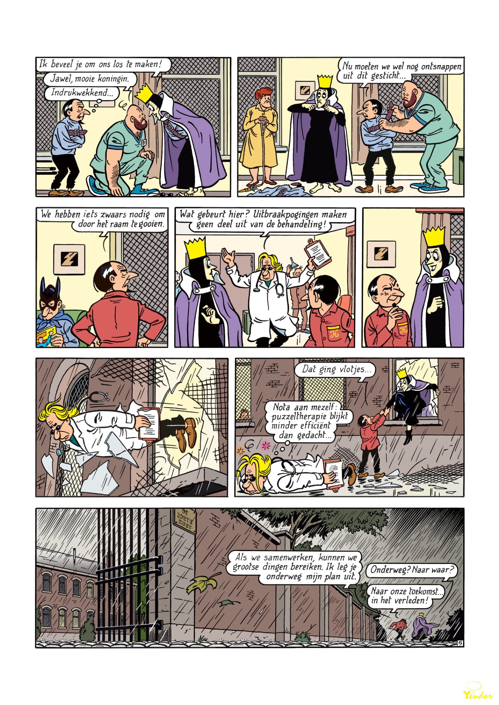 En de korte inhoud van dat verhaal luidt als volgt: “Krimson heeft er zwaar de pest in. Nadat hij voor de zoveelste keer het onderspit moest delven tegen Suske en Wiske, wordt de superschurk opgesloten in de psychiatrische instelling De Zoete Rust. Hij ontmoet er de Koningin van Onderland, die zich in hetzelfde schuitje bevindt. Ook zij trekt keer op keer aan het kortste eind in de strijd tegen Jommeke en zijn vrienden. De booswichten besluiten hun krachten te bundelen. Ze ontsnappen uit de instelling en vluchten naar het verleden met de teletijdmachine van professor Barabas. Dankzij de uitvindingen van de gehypnotiseerde professor grijpen ze de macht in het middeleeuwse Zonnedorp en roepen ze zich uit tot de vorsten van Onderland. Suske, Wiske en Jommeke zullen moeten samenwerken om Barabas te bevrijden en hun aartsvijanden te verslaan.”
