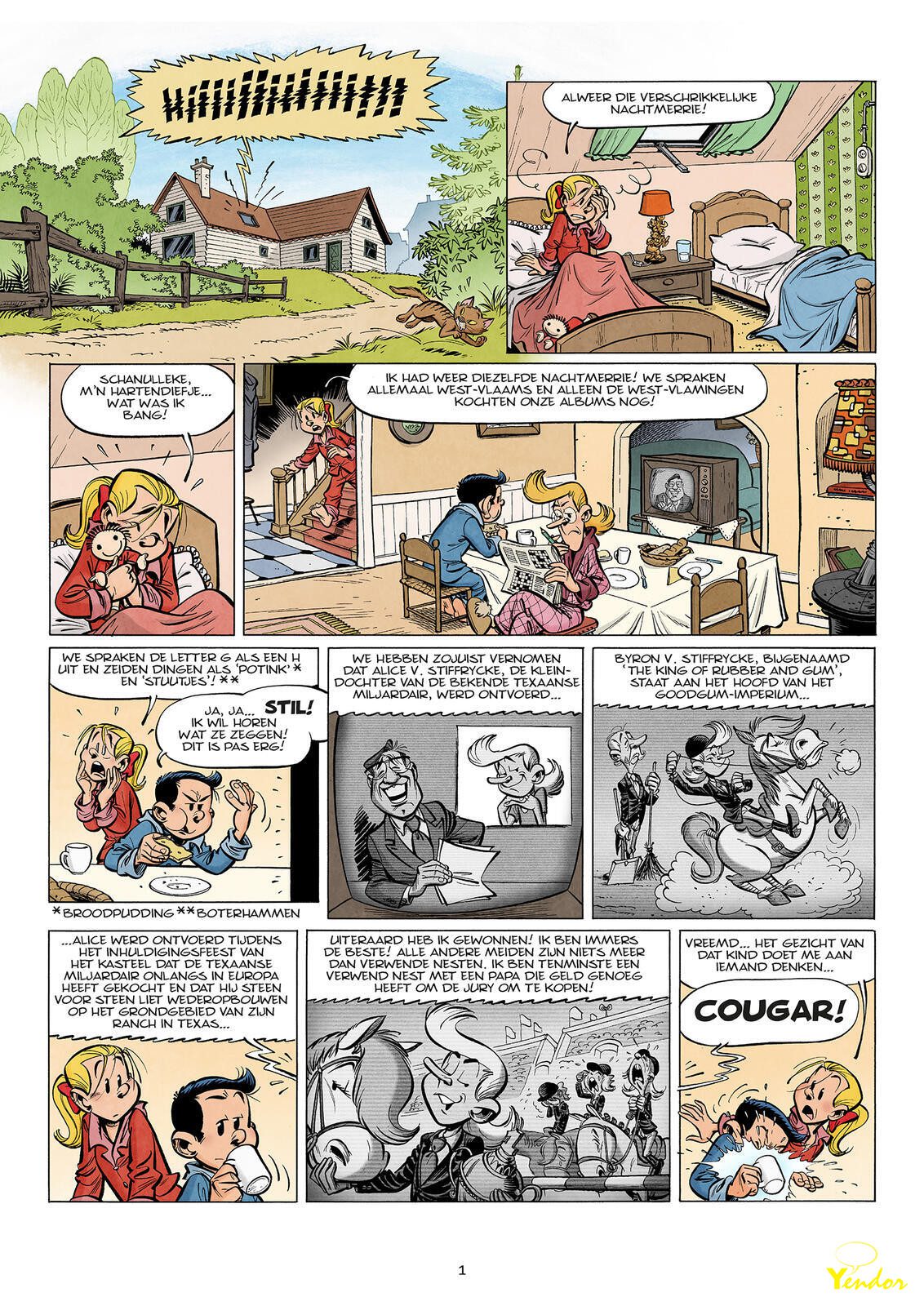 Een geheimzinnige vogel, een witte raaf met een bolhoed op de kop en overmaatse schoenen aan de poten, vervangt een van de eieren uit Wiskes boodschappenmandje door een toverei. Wanneer Tante Sidonia voor Jerom een omelet klaarmaakt, weerklinkt plots een luide knal. Waar ze stond te koken, ligt nu een klein meisje dat verdacht veel op haar lijkt. Het is niemand minder dan Alice Van Stiffrycke, de ontvoerde kleindochter van de Texaanse miljardair Byron Van Stiffrycke… Hiermee kondigt zich voor onze vrienden een avontuur aan vol magische wezens, gevaarlijke boeven, heksen en… rotte eieren!