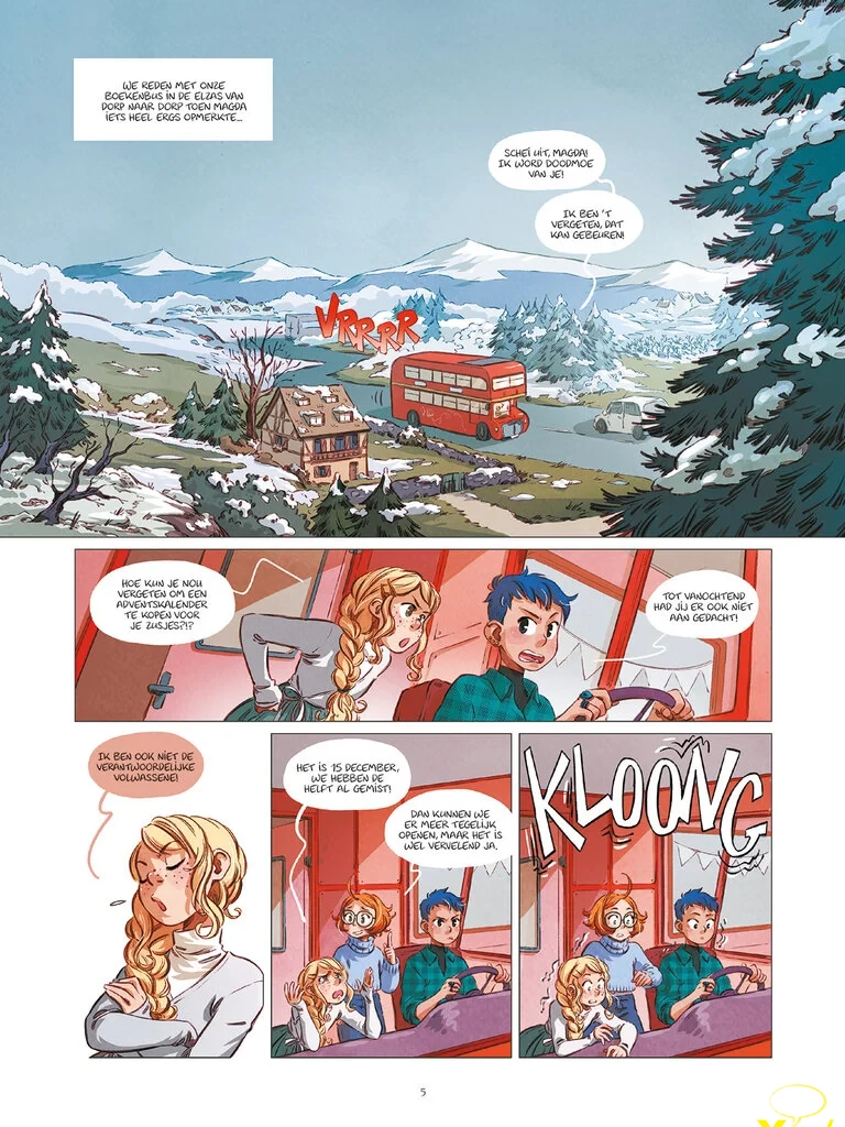 In de aanloop naar kerst strandt de boekenbus van Elfie en haar zussen met motorpech in de Elzas. Daar deelt Elfie voor het eerst haar geheim: Faustine, de dochter van de banketbakker van het dorp, is ook een jonge heks! Maar Faustine is vooral een rampendame die zich steeds in de nesten werkt en op Elfie’s hulp rekent om daar weer uit te komen…