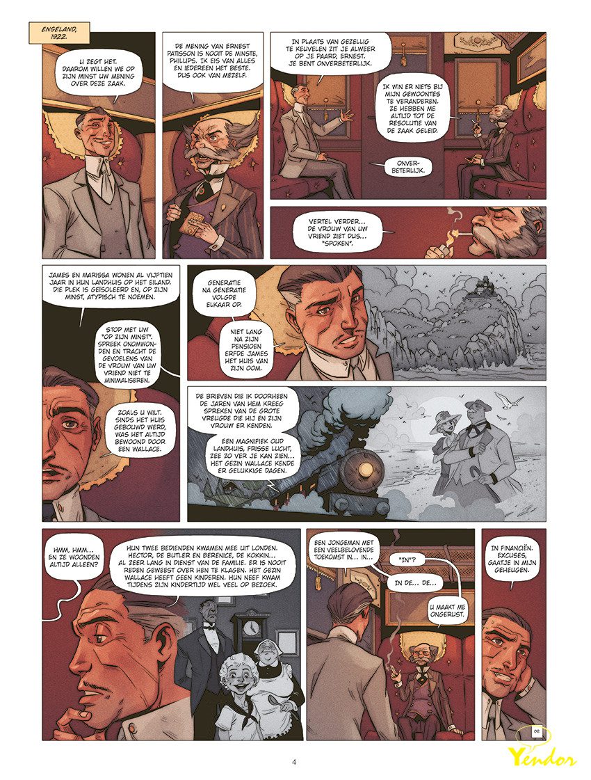 Engeland, 1922. Ernest Patisson wordt uitgenodigd op een afgelegen landgoed op een Schots eiland. De heer van het huis zou graag de mening van de detective hebben over een gluiperige geest die zijn vrouw lijkt te achtervolgen. Patisson beantwoordt de vreemde uitnodiging met plezier. Als eeuwig sceptische rebel kan hij niet wachten het mysterie op te lossen. Maar afgezonderd op het waar deuren uit zichzelf dichtslaan en geschreeuw echoot in de nacht, is het moeilijk om het hoofd koel te houden…