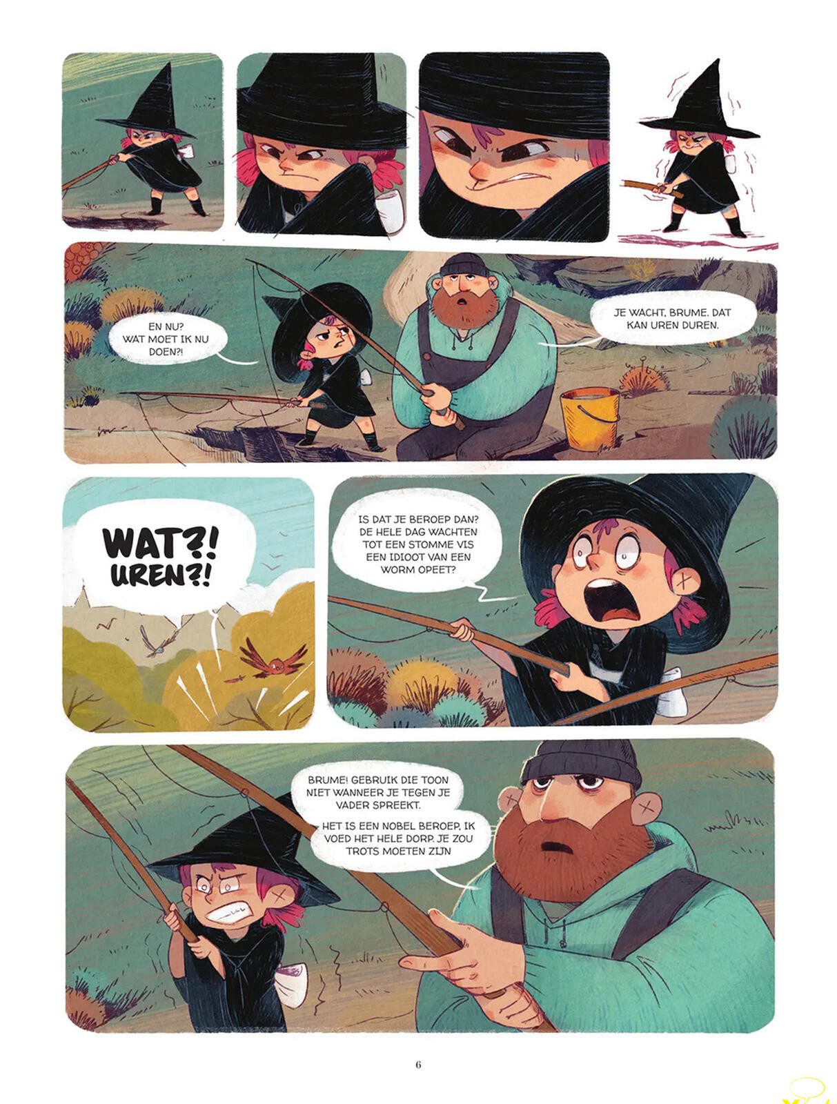 “Brume is een eigenzinnig meisje dat er heilig van overtuigd is dat ze heks zal worden. Als baby werd ze gevonden in het bos door een visser, die haar liefdevol opvoedt als zijn dochter. De dag waarop hij haar eindelijk het geheim rond haar geboorte onthult — een oud toverboek dat destijds naast haar in het bos lag — is voor Brume het moment waarop alles klikt: als je een toverboek bij je geboorte meekrijgt, dan móét je wel voorbestemd zijn voor magie.