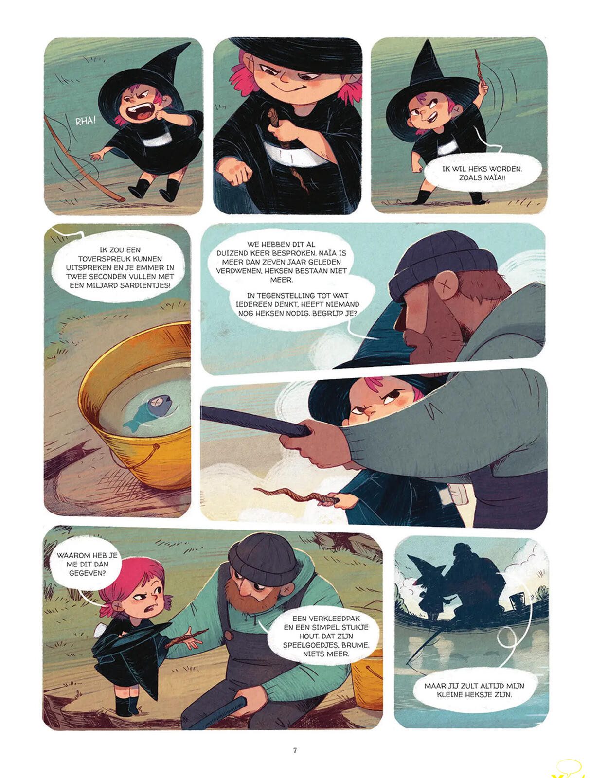 Het resultaat is een avontuurlijke kinderstrip vol komische, mislukte spreuken, monsters en draken, maar ook met ontroerende momenten over vriendschap, angst en zelfvertrouwen. Onder de laag humor en magie schuilt een verhaal over een pleegkind dat op zoek gaat naar haar afkomst en haar plaats in de wereld — een emotionele onderstroom die sterk meespeelt doorheen het album.”