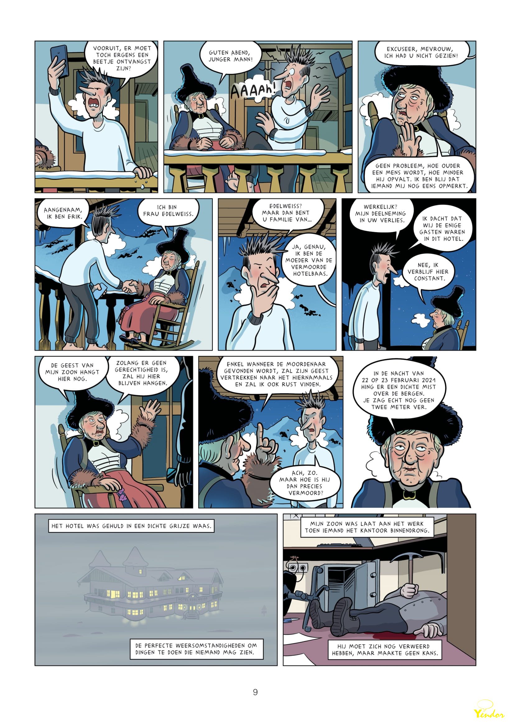De Buurtpolitie-ploeg knijpt er even tussenuit en vertrekt voor een weekje op skivakantie in Oostenrijk. Ze hebben een hotel geboekt op meer dan 3.000 meter hoogte naast een gletsjer. Wat er aanlokkelijk uitzag op de website, blijkt een verlaten herberg te zijn waar volgens geruchten een vloek op rust. De vorige uitbater is er vermoord en de dader werd nooit gevonden. Erik is mateloos geïntrigeerd door het verhaal. Door de grote hoogte kan hij trouwens toch de slaap niet vatten. Hij doet ’s nachts allerlei vreemde ontdekkingen.