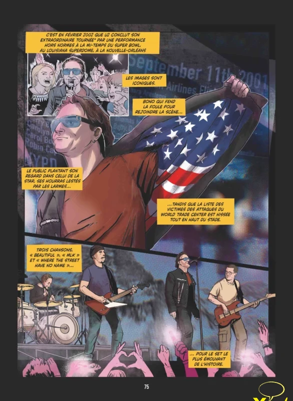 Deze graphic music novel brengt het meeslepende verhaal van U2 tot leven: vier jonge Ieren die vanuit het rumoerige Dublin van de jaren zeventig uitgroeien tot een van de grootste rockbands aller tijden. Van de eerste repetities in een schoollokaal tot wereldwijde triomfen met albums als War, The Joshua Tree en Achtung Baby, stap voor stap zie je hoe Bono, The Edge, Adam Clayton en Larry Mullen Jr. hun unieke geluid en visie opbouwen. De strip toont niet alleen de muzikale mijlpalen, maar ook de idealen die U2 groot maakten: hun engagement voor mensenrechten, geloof in liefde en hoop, en hun voortdurende drang tot vernieuwing. Met expressieve illustraties, pakkende citaten en herkenbare momenten is U2, In the Name of Love een eerbetoon aan de band.