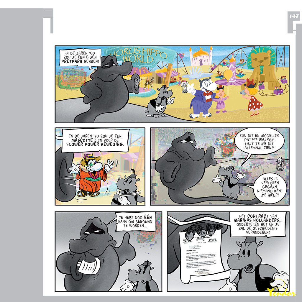 Het boek bevat ook een flip animatie en een apart hoofdstuk over het tekenfilm verleden van Horus Hippo